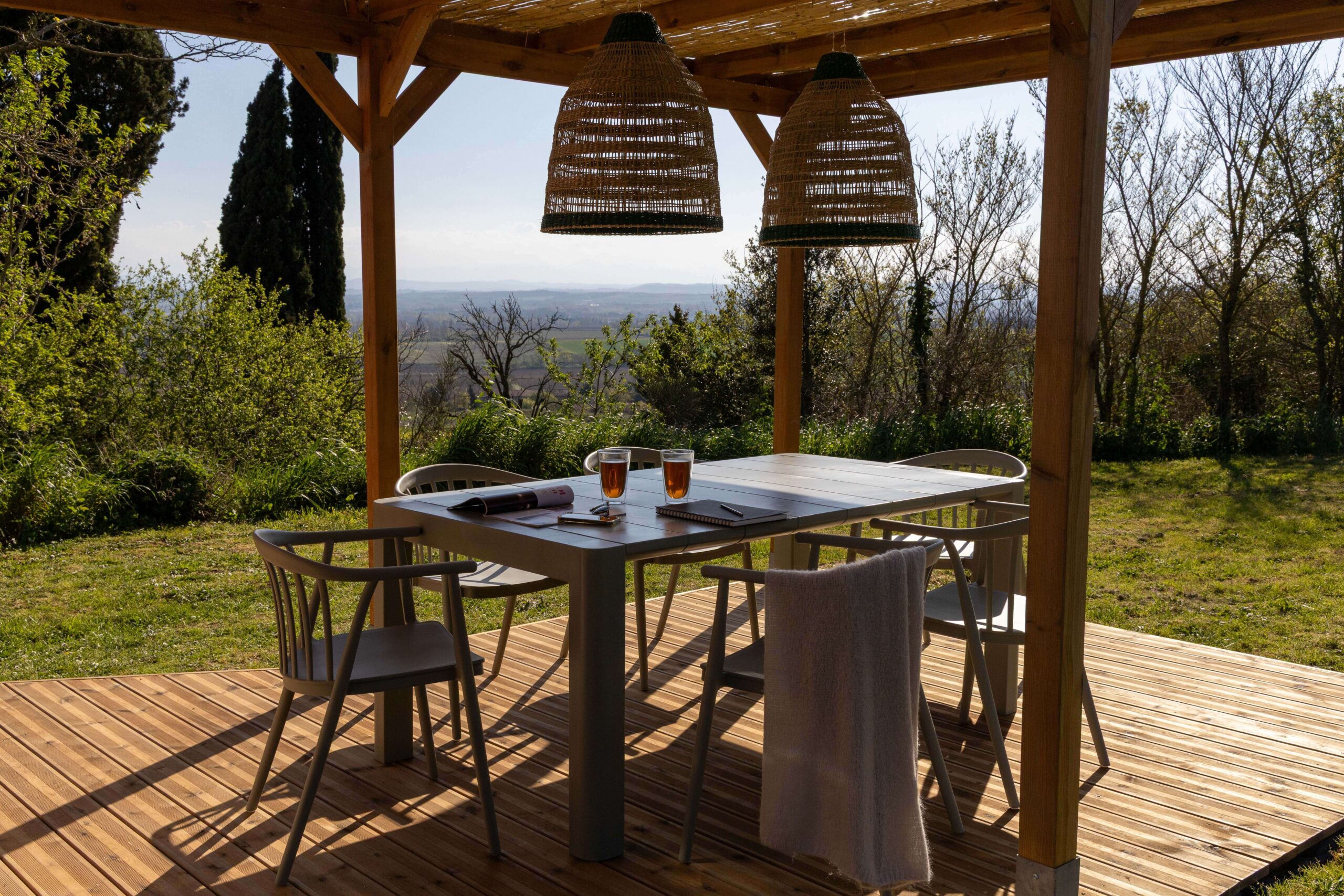 Vues spectaculaires sur la vallée de Carcassonne et les Pyrénées.